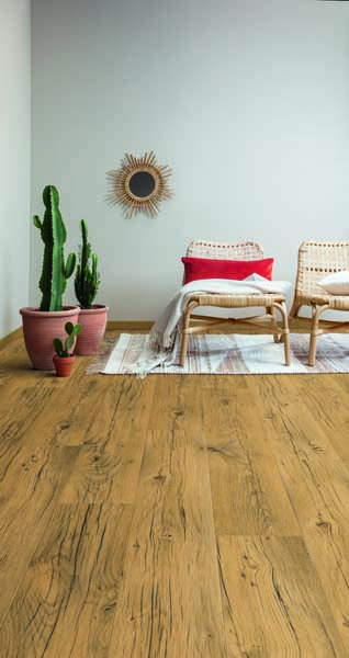 Coming in a range of colours including beige varnished oak, chic walnut, brushed oak cracked oak natural, merbau and natural varnished oak. Each colourway design includes Scratch Guard technology making it up to ten times more scratch resistant than floors without.